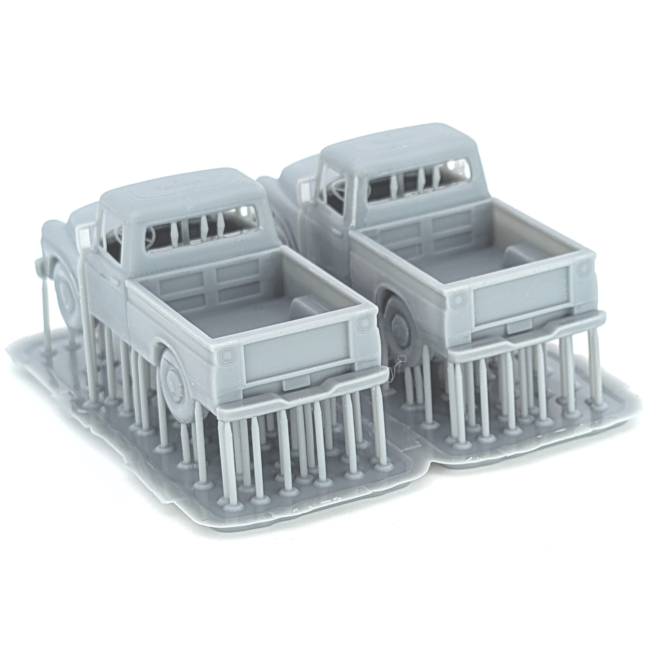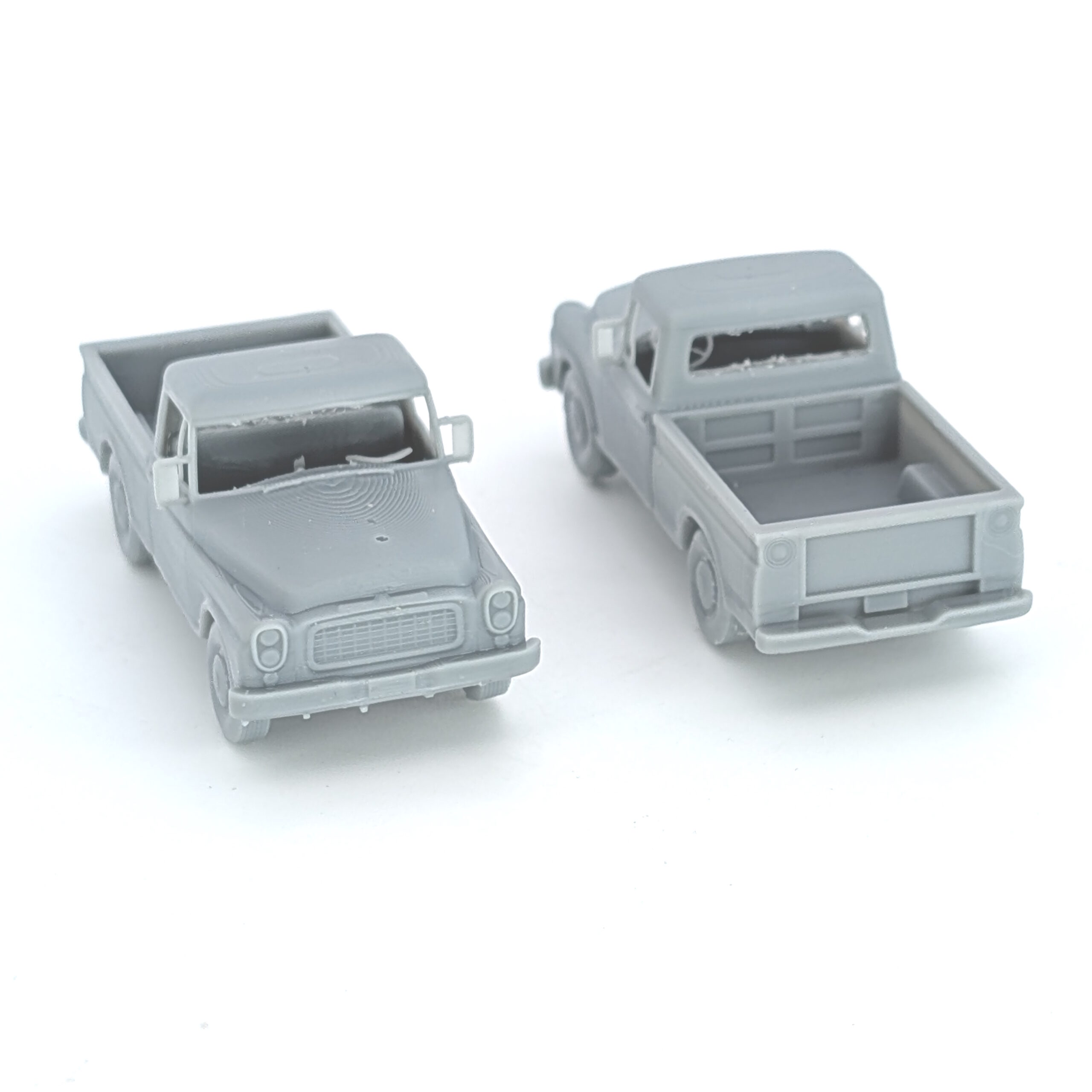 HO-Scale (2) International Harvester 1959-1961 pick up Truck are 3D resin printed, high detail models. But as resin is delicate, if they do break all you have to do is use thick super glue to put them together again – but I’m sure you already know that being an hobbiest like you are!