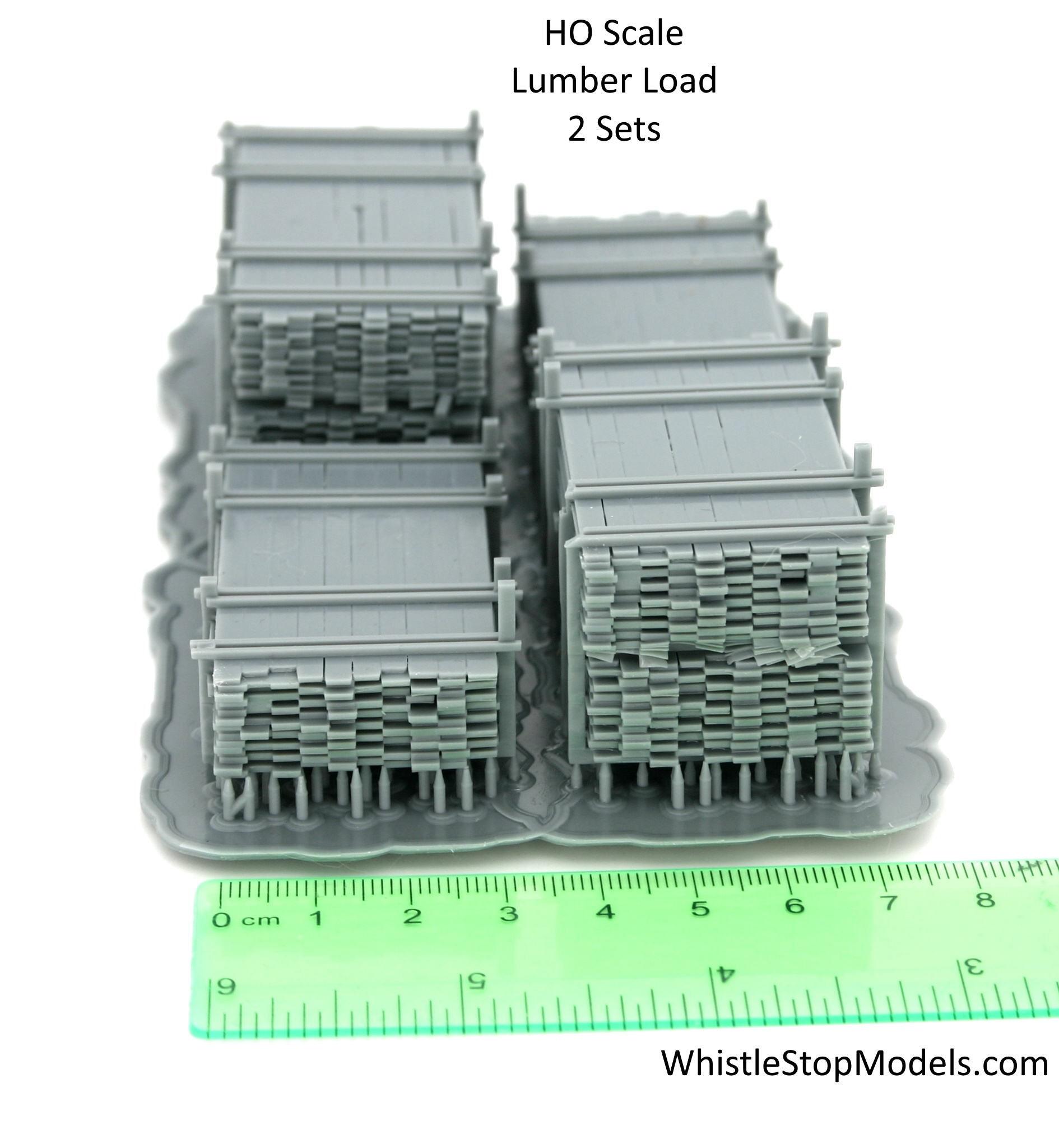 (4) lumber stacks, (2) double stack and (2) single stack for flat car Loads for HO-scale freight.