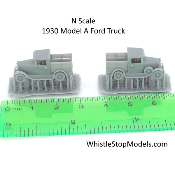 These N-Scale 1930 Model A Ford Truck are 3D resin printed, high detail models. But as resin is delicate, if they do break all you have to do is use thick super glue to put them together again – but I’m sure you already know that being an hobbiest like you are!