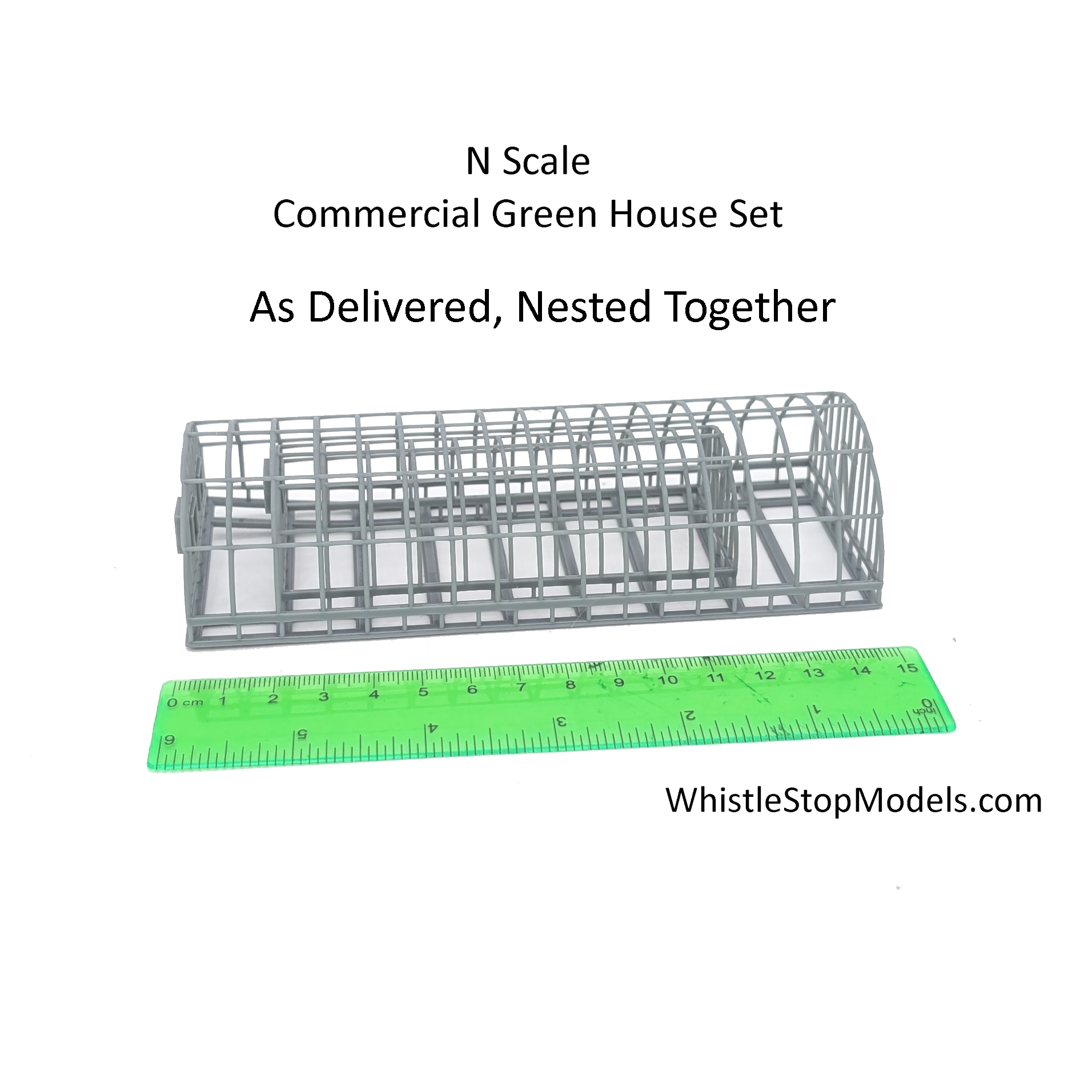 This N-Scale Commercial Green House is 3D resin printed, high detail models. But as resin is delicate, if they do break all you have to do is use thick super glue to put them together again – but I’m sure you already know that being an hobbiest like you are!