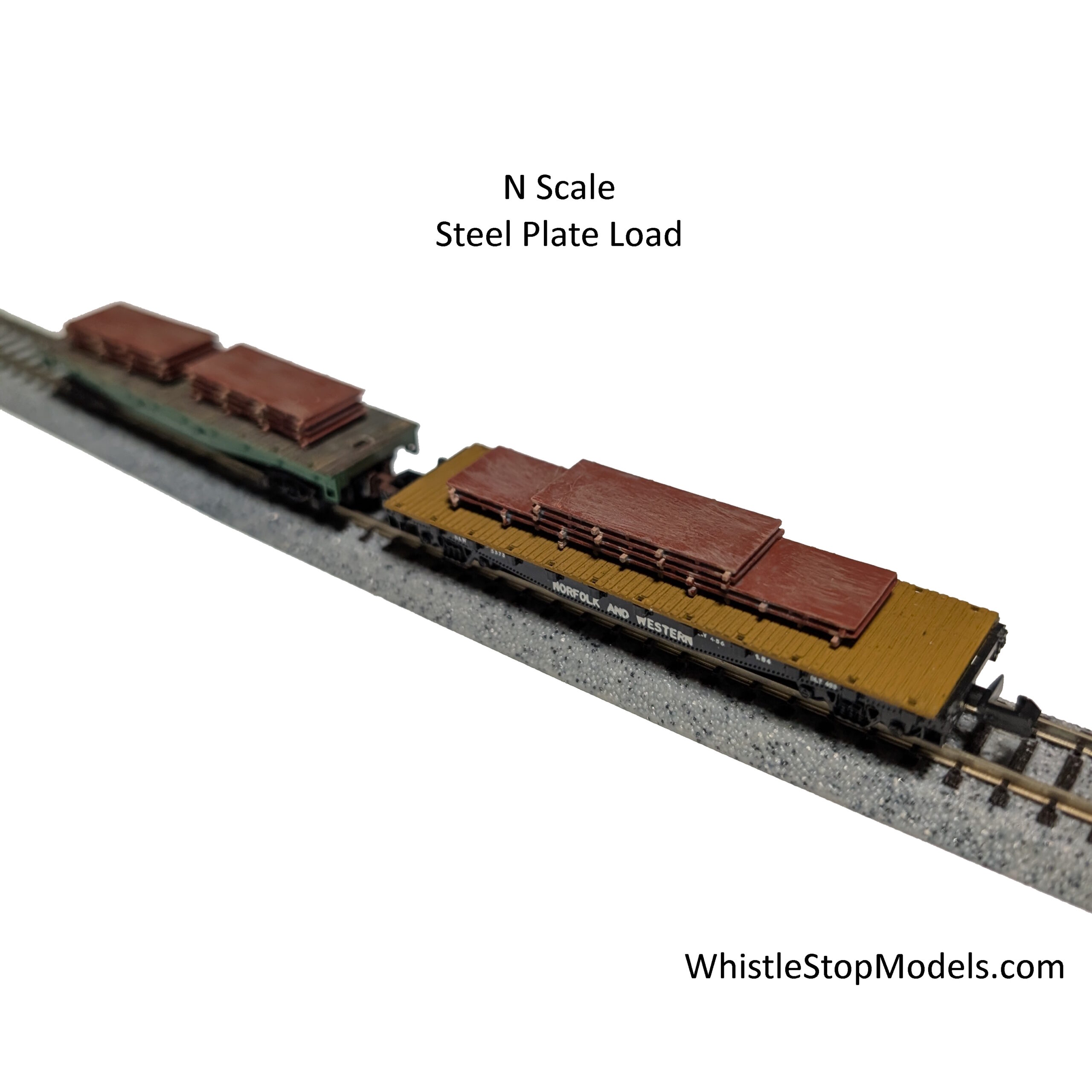 This N-Scale Steel Plate Load will fit nicely on a single flat car and create an eye-catching load for viewers to watch.