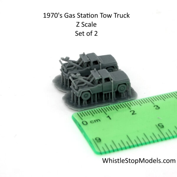 These Z-Scale 1970 pick up tow trucks are 3D resin printed, high detail models. But as resin is delicate, if they do break all you have to do is use thick super glue to put them together again – but I’m sure you already know that being an hobbiest like you are!