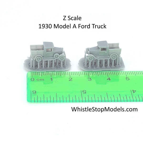 These Z-Scale 1930 Ford model A trucks are 3D resin printed, high detail models. But as resin is delicate, if they do break all you have to do is use thick super glue to put them together again – but I’m sure you already know that being an hobbiest like you are!